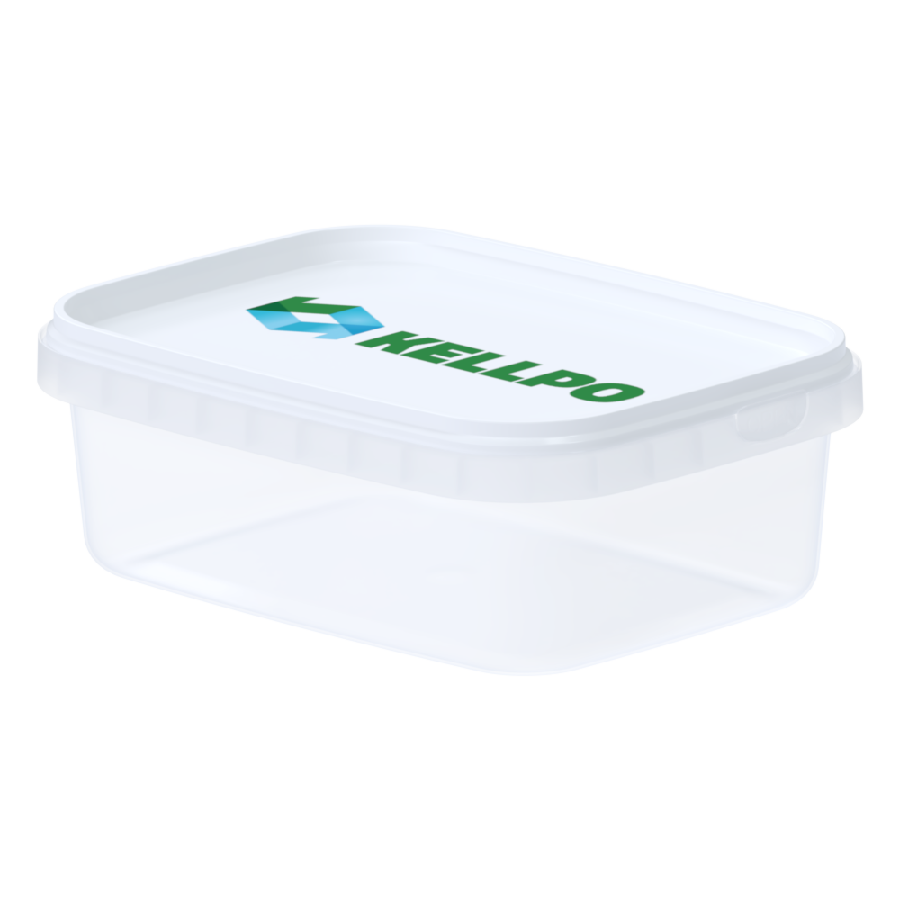 Rektangulær emballage med afrundet bund og pilfingersikring i fødevaregodkendt materiale. Emballagen kan anvendes med et tætsluttende låg og er velegnet til delikatesseprodukter, salater, dressinger og meget mere. Låg bestilles separat.