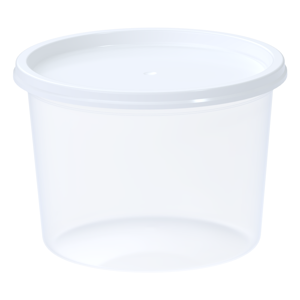 Rund emballage, der kan anvendes med et tætsluttende låg. Velegnet til dressinger, saucer og delikatesseprodukter. Låg bestilles separat.